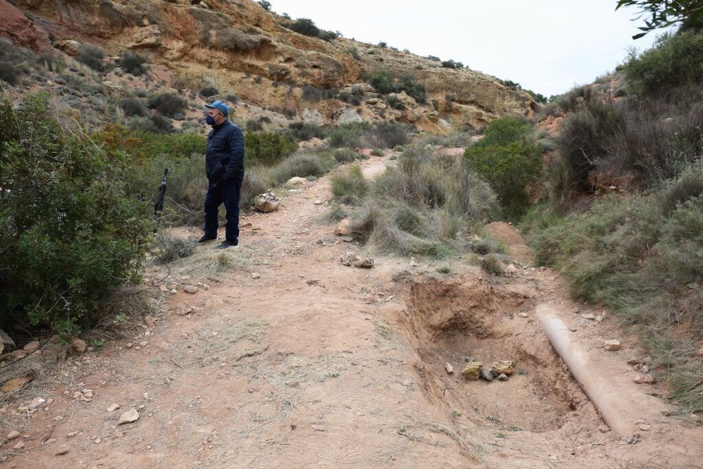 Fosa en la que fueron hallados semienterrados los cuerpos de un hombre y una mujer en el barranco del Grifo, en el término municipal de Elche (Alicante).JOAQUIN DE HARO RODRIGUEZ