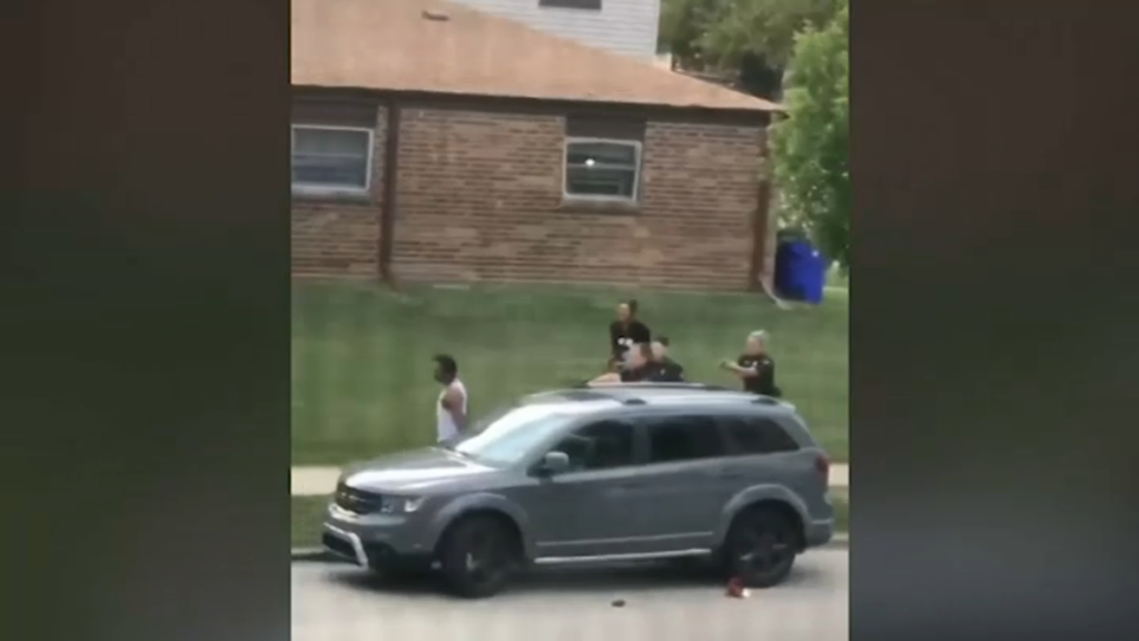 El video, que parece mostrar el incidente desde la calle opuesta, recogió la imagen de tres oficiales que gritaban y apuntaban al hombre que se presume es afroamericano, mientras éste caminaba frente a una SUV estacionada en la calle.