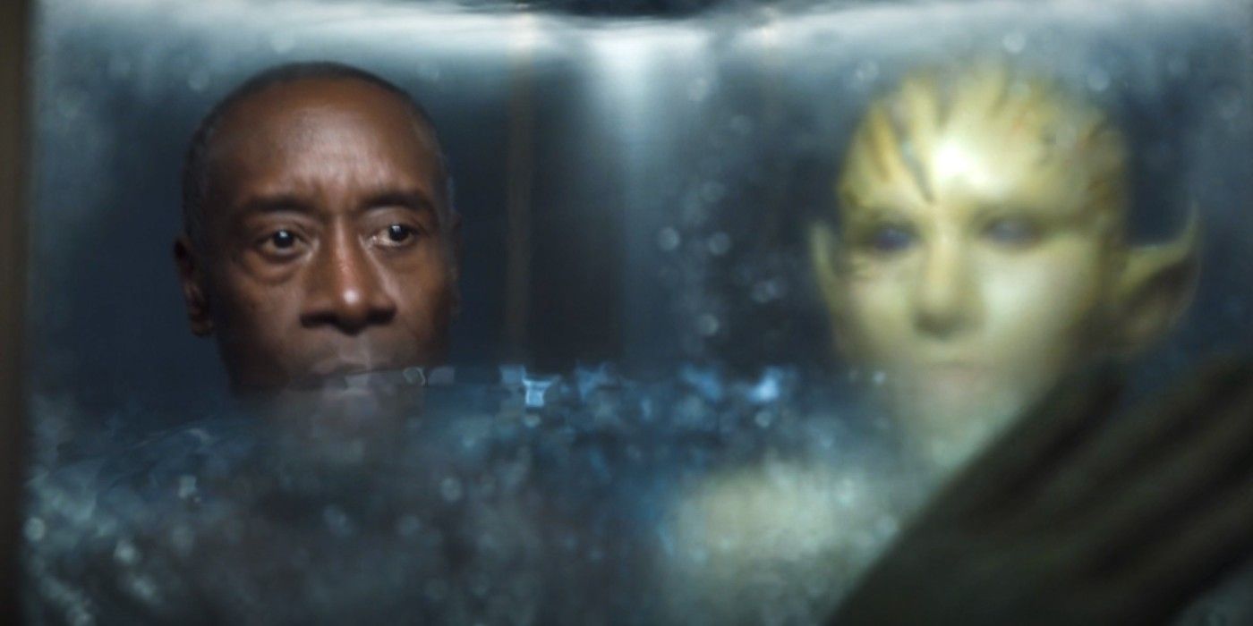 ¡Advertencia! Spoilers a continuación para el episodio 4 de Secret Invasion. Kevin Feige sugiere que Rhodey pudo haber sido un Skrull en el Universo cinematográfico de Marvel por mucho más tiempo. La mayor teoría de Skrull en invasión secreta finalmente se demostró en el episodio 4, “Amado”, con la revelación de que Rhodey es realmente una Skrull femenina en suplantación. El programa no profundiza en el giro de la trama, pero Feige ofrece nuevas pistas sobre cuándo se reemplazó al mejor amigo de Iron Man.