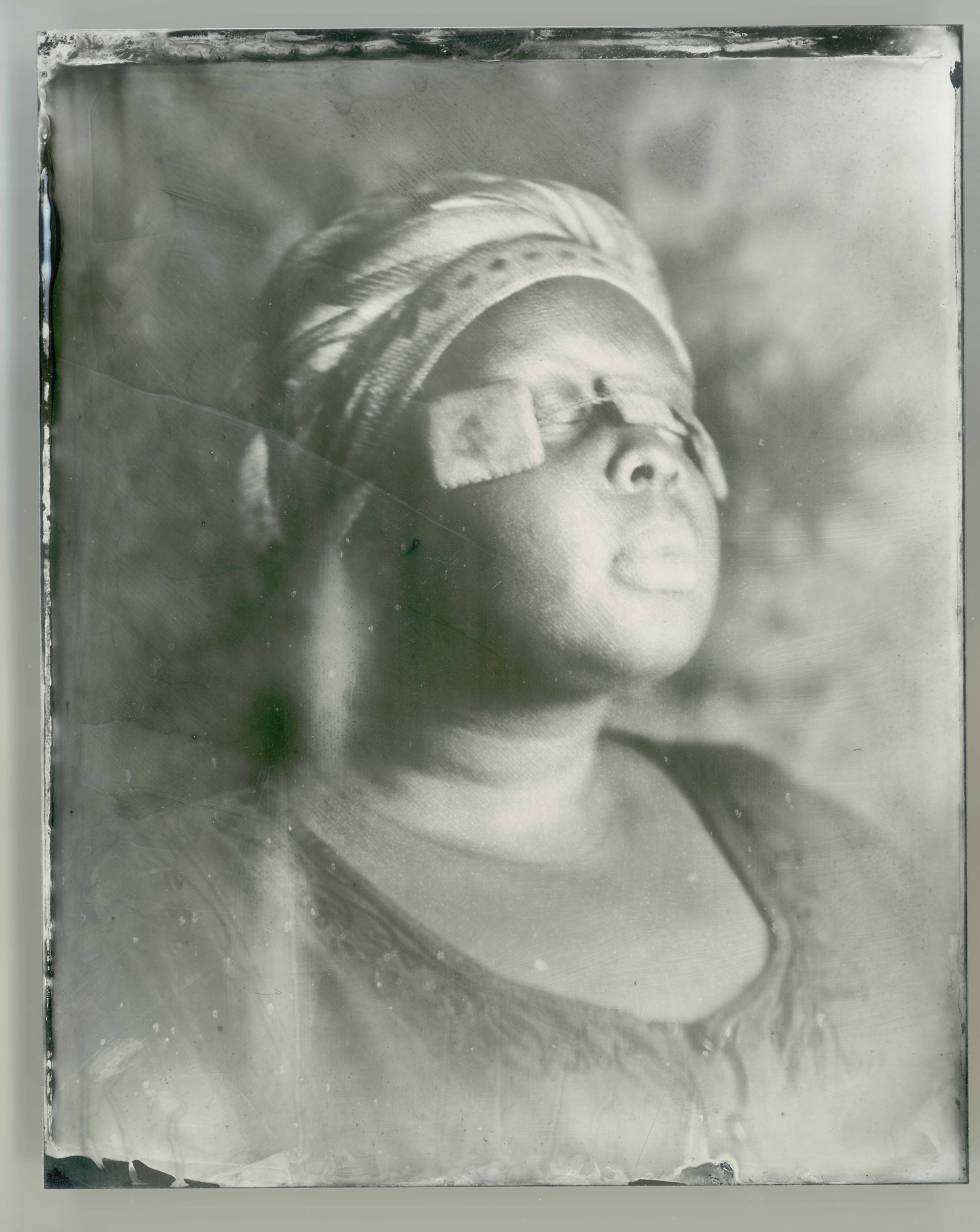 El uso del autorretrato como una forma de explorar la identidad colectiva a través de la identidad individual es algo que viene siendo común entre algunos de los fotógrafos contemporáneos de origen africano. Entre ellos destacan Zanele Muholi y Samuel Fosso y Omar Victor Diop, que han hecho de la práctica del autorretrato su sello. Así, sentada frente al visor de la cámara, ataviada con un traje oscuro, y con distintos tocados, la artista introduce distintos objetos en la imagen. Elementos que parecen adquirir un simbolismo que se integra en unos rituales inventados de significado ambiguo. Con la ayuda de su asistente Almudena Romero, el autorretrato se convierte en el campo de experimentación de “un modo de proclamar la devoción, la virtud, el alma y la prosperidad de uno mismo”, en palabras de la fotógrafa. Es la propia inestabilidad del proceso utilizado, el colodión húmedo, —un método muy utilizado en la segunda mitad del siglo XIX, en el cual la placa de cristal debe permanecer húmeda durante todo la toma y el revelado— la que favorece los resultados inesperados, más allá del control del propio artista, y otorga a las imágenes un aire etéreo y fantasmagórico. “Dentro del proceso uno se rinde a lo desconocido, de forma similar a lo que requieren las fuerzas superiores: rendición y sacrificio. Cada tinitipo tiene una historia única que contar, una metáfora de nuestro viaje individual espiritual”, escriben los comisarios David A. Bailey y Jessica Taylor en al catálogo publicado durante la muestra de Venecia.