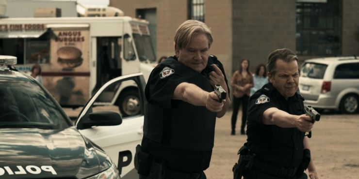 Bruce McCulloch y Mark McKinney interpretaron con frecuencia a un dúo de patrulleros incompetentes del Departamento de Policía de Toronto, cuyas travesuras parodiaban programas sobre crímenes reales como POLICÍAS. Sus personajes policiales regresan, tan tontos como siempre, en una serie de bocetos a lo largo de la nueva temporada de Él Niños en el pasillo.