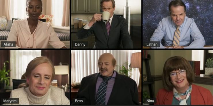 Los niños en el pasillo parodiaba la cultura corporativa con varios personajes recurrentes que trabajaban para la empresa ficticia AT & Love. El episodio de estreno de la nueva Niños en el pasillo trae de vuelta a los trabajadores de oficina de AT & Love Kathie con K (Bruce McCulloch) y Cathy con C (Scott Thompson) mientras lamentan la decisión de la compañía de dejar de usar su amada máquina de fax. Otro boceto trae de vuelta a Danny Husk de Scott Thompson, Nina Spudneeyak de Mark McKinney y Boss de Dave Foley como parte de una reunión de Zoom para discutir el problema de los empleados que se masturban durante las reuniones de Zoom.