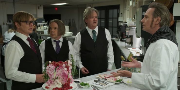 Varios bocetos en el Niños en el pasillo El avivamiento se centra en un trío de camareros, Cory (Foley), Dory (McCulloch) y Tory (McKinney), y el chef del desierto Rory (Thompson) mientras se enfrentan a numerosos desastres en su restaurante de clase alta. Si bien no eran personajes recurrentes en el original Niños en el pasillolos cuatro personajes aparecieron originalmente en el boceto de la temporada 5 “Desierto”.