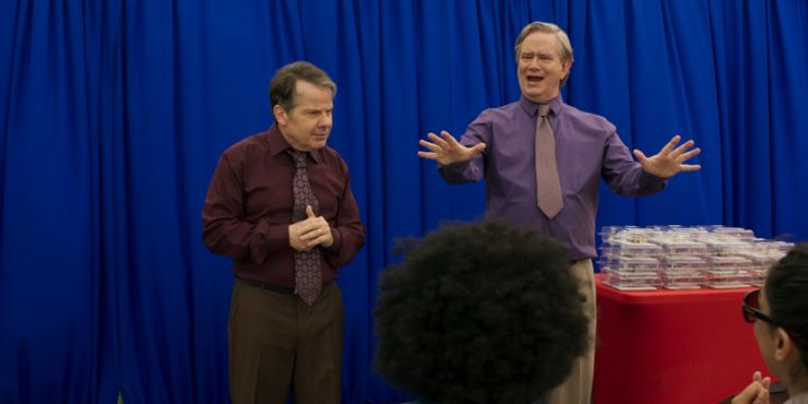 Gord (McCulloch) y Jeff (McKinney) eran un dúo de vendedores deshonestos que intentaban vender mercancías inverosímiles y vender a la gente esquemas Ponzi que prometían dinero fácil. El nuevo Niños en el pasillo La serie revela que todavía están a la altura de sus viejos trucos, tratando de vender un dispositivo llamado Gut Spigot, que pretende desviar la grasa de su estómago hacia su tanque de gasolina.