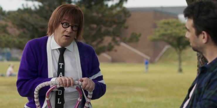 Mark McKinney se destaca como el único comediante que es tanto Kid in the Hall como miembro regular del elenco de Sábado noche en directo. Los niños en el pasillo revival honra esta conexión al permitir que McKinney renueve a uno de sus personajes de SNL, el superpositivo e hiperactivo Taddli. Originalmente presentador de un programa de entrevistas que se pasó de la raya al presentar un mensaje antidrogas, Taddli ahora está haciendo anuncios de servicio público para niños sobre los males de fumar, las alegrías de reciclar y por qué bailar un miércoles está simplemente mal.