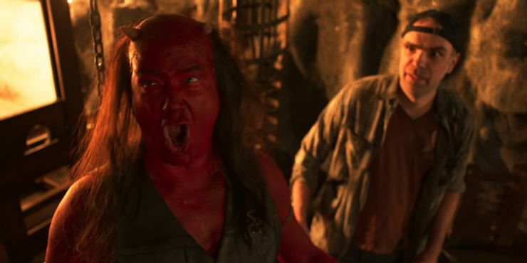 La cultura popular abunda en demonios que, si no inspiran simpatía por el Diablo, al menos lo convierten en un pícaro simpático. El diablo interpretado por Mark McKinney es un señor oscuro amante del metal que se involucra en duelos de guitarra por las almas de los jóvenes rockeros cuando no está ayudando a siniestros vendedores y ejecutivos de cadenas de televisión con su trabajo (según se informa, es responsable de las chicas de oro y sus múltiples derivados). El diablo de McKinney aparece en el primer boceto de la Niños en el pasillo reiniciar, aullando cuando la maldición que mantuvo a los Niños fuera de la televisión finalmente se rompe después de 27 años.