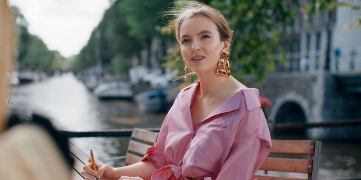 No podemos decir qué es más para morirse: los pintorescos canales de Ámsterdam o el atuendo de Villanelle, con su firma rosa. Rasca eso. Sin ofender, Ámsterdam, pero la blusa Rosie Assoulin de gran tamaño de Villanelle gana las manos. Se ve fabulosa como siempre, pero cualquier jet-set mundano puede atar un nudo en su blusa.