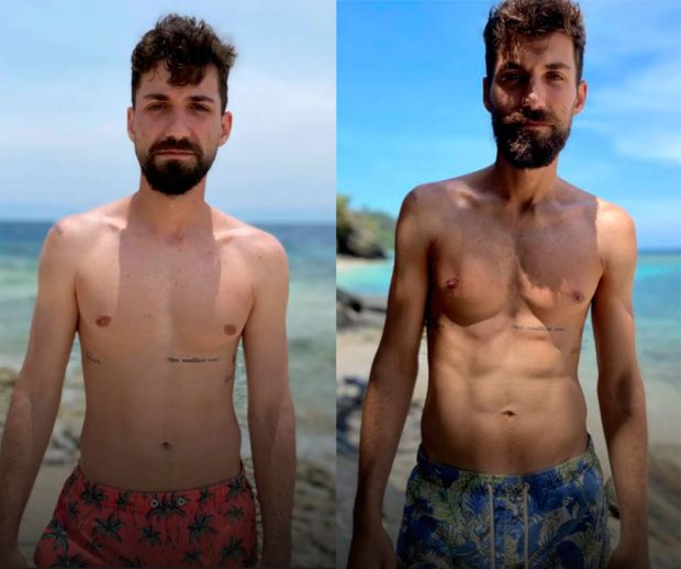 El italiano se ha convertido en el concursante más positivo y eso que se ha dejado algún que otro kilo por el camilo. Además de notársele en el rostro, también se puede ver el cambio en el abdomen y es que puede presumir de ‘six pack’.