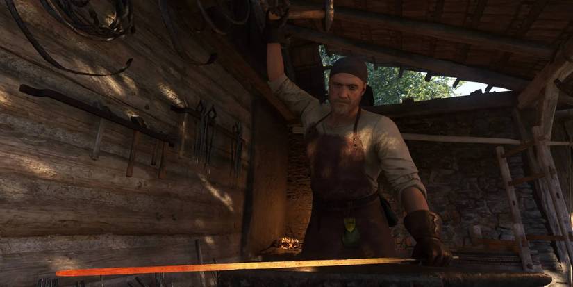 La forma más fácil de reparar la armadura es Contrata a un herrero NPC Encontrado en uno de los varios asentamientos que visita. El mapa mundial de KC: Liberación 2 seguramente tendrá al menos unos pocos herreros que pueden arreglar su armadura, especialmente al principio del juego. Cuanto mejor sea su relación con un herrero, más barato será para reparar su armadura con ellos.