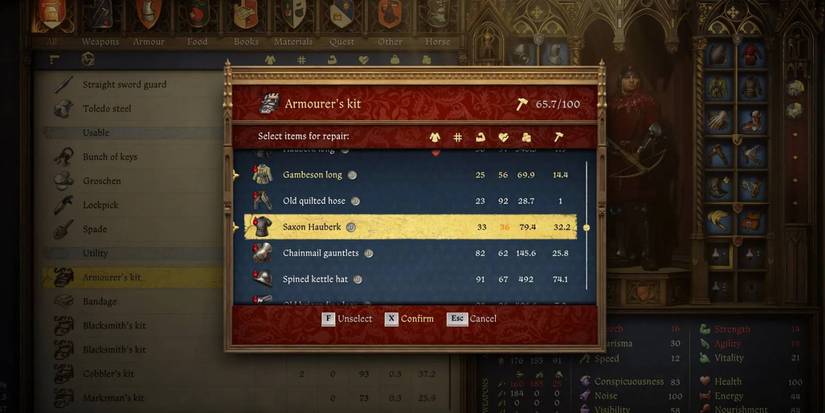 Esto también se extiende a otros kits, incluidos los kits de Cobbler y los kits de sastre utilizados para reparar la ropa básica. Si bien puede reparar sus armas y armaduras constantemente a través de kits, arreglar su equipo de esta manera utilizará valiosos kits rápidamente en Kingdom Come: Deliverance 2.