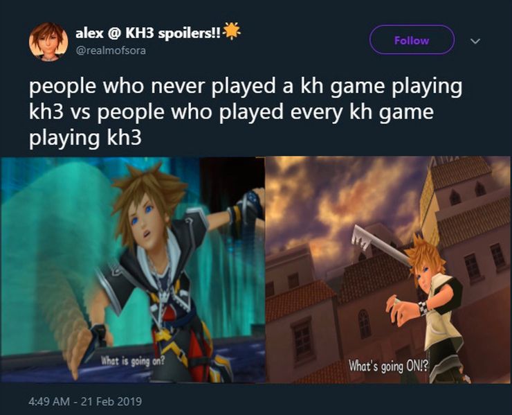 No importa el caso, Corazones del Reino III es más difícil de navegar y más difícil de conquistar que las entregas anteriores de la franquicia, un sentimiento articulado acertadamente en la imagen de Alex @realmofsora en Gorjeo. Ya sea un novato o un experto, KH3 dejará a los jugadores en un estado constante de confusión caótica que puede conducir o no a abandonar la franquicia en el futuro.
