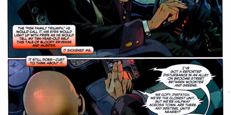 En Daredevil 2099 por Robert Kirkman, Karl Moline y Mike Perkins, el mundo futurista se ha deshecho de los superhéroes después de que se restableciera la Ley de Registro de Mutantes y los Centinelas se utilizan como la forma principal de aplicación de la ley. Los pocos héroes que quedan operan en las sombras, incluida la versión futurista de Daredevil, también conocido como Samuel Fisk, el nieto de Wilson Fisk. En el número, Daredevil explica cómo Kingpin fue capaz de acabar con el Daredevil de su tiempo, llamando al evento el “triunfo de la familia Fisk”. De la caída del Daredevil de Matt Murdock a manos de Wilson Fisk nació el Daredevil del año 2099.