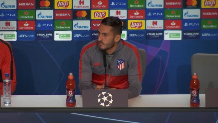 Koke Resurrección, jugador y capitán del Atlético de Madrid, acompañó a Diego Simeone en la rueda de prensa oficial previa al choque ante el Bayer Leverkusen.