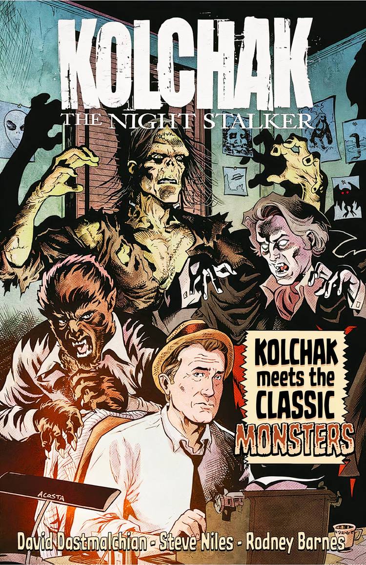 Kolchak: el acosador nocturno – Colección de tapa dura de lujo “Kolchak conoce a los monstruos clásicos”; Portada de Dave Acosta; Color de Zac Atkinson