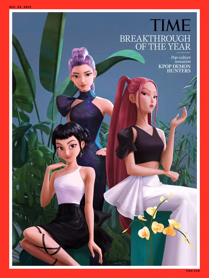Revista TIEMPO ha nombrado Cazadores de demonios KPop su Avance del Año 2025. Como tema de portada de este número, las entrevistas con el Cazadores de demonios KPop El elenco y el equipo están acompañados por una ilustración de portada personalizada de Rumi (con la voz de Arden Cho), Mira (May Hong) y Zoey (Ji-young Yoo), también conocida como Huntr/x. Mira esta portada a continuación: