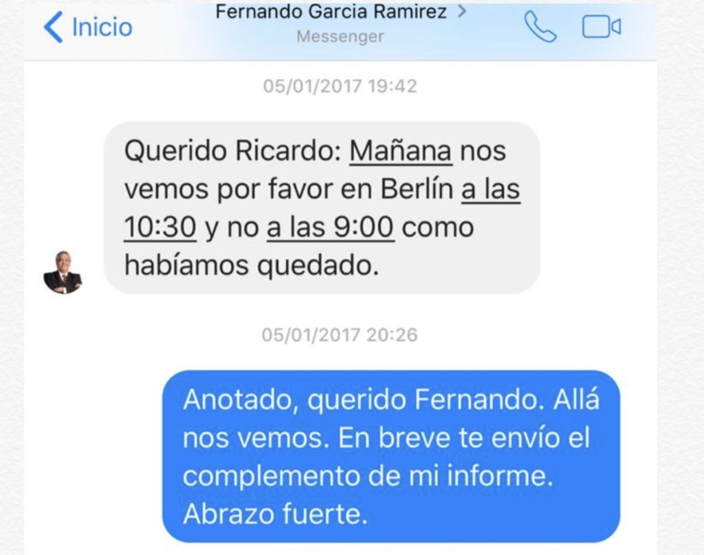 Se lo hice saber a Fernando y, por toda respuesta, intentó calmarme con un argumento ramplón: nosotros sólo habíamos investigado “asuntos públicos”. Y me pedía que me tranquilizara. Le reclamé el hecho de que la oficina de Berlín continuara operando. Hacía tiempo que consideraba que en estábamos muy expuestos en aquella casa. En una junta me dijo: “no seas paranoico, Ric”. Más tarde, en un lacónico mensaje por Facebook, me dijo: “Ya la están desmantelando”.