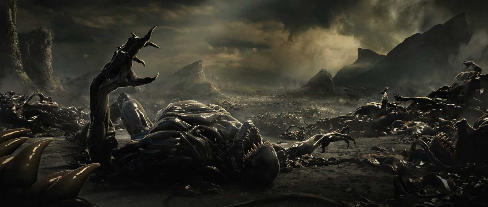 Inicialmente, Kraven el cazador estaba listo para debutar antes Veneno: El último bailelo que puede haber contribuido en parte a que la escena antes mencionada fuera eliminada del montaje final de la película. Compartida en ArtStation por Jules Darriulat, la imagen muestra simbiontes muertos en un paisaje desolado. Aunque se desconocen los detalles de la secuencia, parece ser el lugar de una batalla en un planeta alienígena. Se desconoce el motivo por el que se descartó la escena, pero probablemente habría relacionado con la aparición de Knull en Veneno: El último baile.