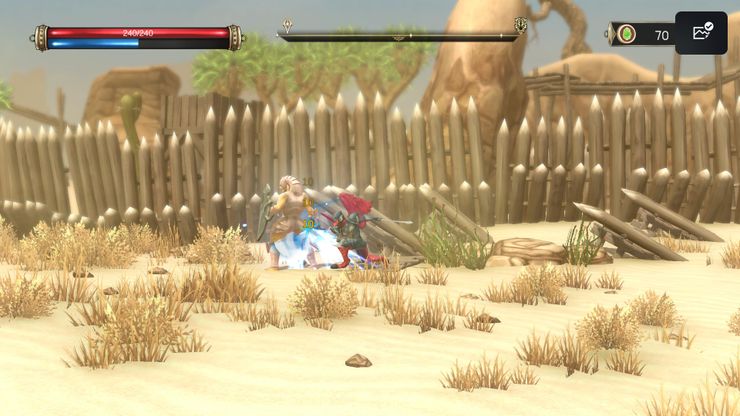 Un poco más de la mitad de cada etapa, el primer punto de control se puede desbloquear antes de luchar contra un mini-jefe. Cada minijefe tiene un número determinado de ataques y un patrón que siguen. Después de aprender el comportamiento del jefe, las peleas son fáciles de ganar. La mayor parte del combate a lo largo Krut: Las alas míticas es exactamente igual Aunque hay diferentes enemigos con diferentes ataques, el Krut solo necesita ponerse detrás de ellos, dar algunos golpes y luego saltar o rodar detrás de ellos cuando se dan la vuelta. La única excepción son los enemigos voladores, pero generalmente requieren menos golpes para derrotarlos y se pueden alcanzar fácilmente saltando.