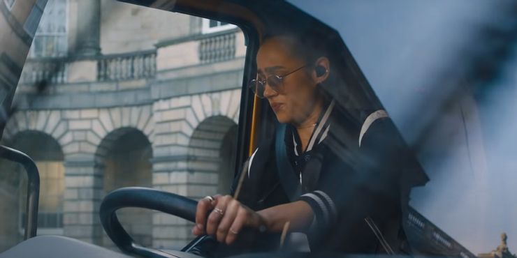“Guau. En cuanto a la conducción, contamos con un equipo de acrobacias y especialistas en acrobacias realmente experimentados. En términos de qué preparación implica eso, no tengo idea, sería mejor que se lo preguntara a esos muchachos.