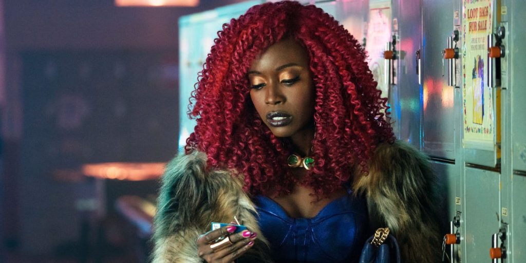 Dado que la temporada 1 final se ha convertido en Titanes'Estreno de la temporada 2, no se sabe cuán rápido se llevará a cabo el cambio de Starfire. Tal vez el equipo tenga un momento de respiro después de enfrentarse al padre de Raven, Trigon, que tuvo a Dick (Brenton Thwaites) por última vez en sus garras de la mente combada. Starfire sacudió dos trajes inspirados en los años 70 el año pasado mientras pasaba semanas en la carrera, así que será divertido ver lo que se pone cuando tiene un momento para respirar. Mientras ella todavía esté vestida de púrpura, Diop seguramente logrará cualquier look. Titanes le da a ella.
