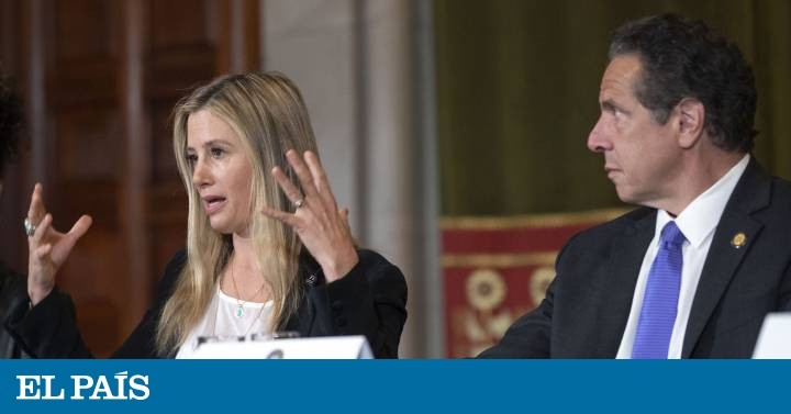 Mira Sorvino, junto al gobernador del Estado de Nueva York, Andrew Cuomo, este miércoles. En vídeo, declaraciones de la actriz y activista de TimesUp. Mike Groll AP