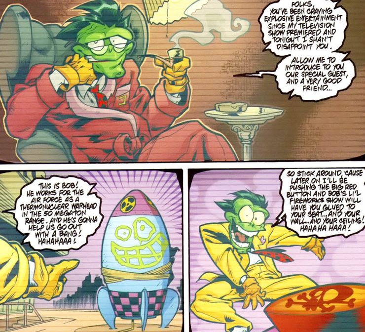 Mientras que el Guasón no cambia mucho después de ponerse la Máscara en términos de personalidad, a diferencia de los usuarios anteriores que eran irreconocibles en su forma de “Cabeza Grande”, la Máscara descubre los deseos más profundos del Guasón y revela la verdadera razón por la que es un La mente maestra criminal. Como señalan Harley Quinn, Batman y otros a lo largo de la serie, la Máscara se conecta con la mente inconsciente de cualquiera que se la ponga y libera sus deseos reprimidos. Para el Guasón, ese deseo reprimido es realizar su propia transmisión de 24 horas llena de gags y criminalidad, aumentando constantemente el alcance de sus fechorías para mejorar sus índices de audiencia. Esta revelación demuestra que el Guasón no es el Príncipe Payaso del Crimen porque solo quiere crear el caos por sí mismo, sino porque anhela la atención del mundo y causar estragos es la mejor manera de conseguirlo. Joker incluso evita bombardear la ciudad de Gotham solo para poder hacerlo en horario estelar.