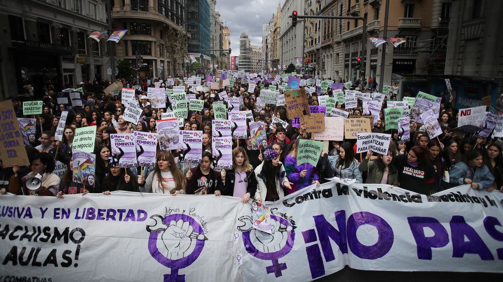 Manifestación feminista de estudiantes, este viernes en la Gran Vía de Madrid.Samuel Sánchez El grito resonó en la calle de Alcalá de Madrid. Por el altavoz, una de las organizadoras acababa de pedir “un rugido contra Vox”. Era el final de una manifestación que había comenzado dos horas antes en la Puerta del Sol contra “la violencia machista, la justicia patriarcal y la ofensiva que la extrema derecha y sus aliados han lanzado contra las mujeres y el colectivo LGTBI”, en una jornada de “huelga general estudiantil feminista y antifascista” convocada por el Sindicato de Estudiantes. Ha habido movilizaciones en 40 ciudades. En Madrid, la protesta ha terminado con una sentada frente al Ministerio de Igualdad: reclamando una asignatura de educación sexual, obligatoria y evaluable, “contra el veto parental”, una medida por la cual se implanta el control de los padres sobre el contenido extracurricular que imparten profesores ajenos al centro, como por ejemplo, charlas de educación sexual o sobre el colectivo LGTBI.Las manifestaciones más numerosas se han celebrado en Madrid —donde la Delegación del Gobierno ha cifrado en 3.000 los asistentes y los organizadores, en más de 15.000— y en Barcelona —donde la Guardia Urbana ha informado de 4.000 participantes y el sindicato, de 30.000—. La mayoría eran mujeres. Los convocantes hablaron de “más de 100.000” asistentes a la protesta en ciudades a lo largo del país. Como Murcia, donde el veto parental ya es una realidad y salieron a la calle unos dos centenares de personas. La organización estima que dos millones de estudiantes hicieron huelga, con un 80% de seguimiento en institutos. En Madrid, la Consejería de Educación no ofrece datos en huelgas estudiantiles. En Cataluña, el Departamento de Enseñanza calcula un 40,48%. El sindicato reclama una asignatura de educación sexual, obligatoria y evaluable, que se recoja en las normativas de los institutos el respeto a la libertad sexual y a que los estudiantes elijan cómo vestir, el fin de las subvenciones a la concertada, además de que se acabe con el veto parental. “Este último es solo un ejemplo de lo que nos tienen preparado, que es hacer de la educación su plataforma política e ideológica. No lo vamos a permitir”, ha explicado este viernes Carol Latorre, secretaria general del Sindicato de Estudiantes. “La ultraderecha es una amenaza muy seria y responderemos en la calle”, decía. Y ha insistido en que la movilización de este viernes es el pistoletazo de salida de la manifestación del 8 de marzo. “Ahora que mujeres del PP y Ciudadanos han vuelto a decir de repente que vuelven a ser feministas, o muchas de ellas participarán en la protesta del 8-M, aprovechamos esta manifestación para decirles, por muy mujeres que sean, que aquellas que fomentan el machismo, la homofobia y condenan a mujeres a desahucios, trabajos basura y precariedad no son nuestras aliadas y no son bienvenidas”, ha afirmado Latorre.La protesta estaba convocada además por la plataforma feminista Libres y Combativas, que lanza un mensaje al Gobierno de coalición y a Unidas Podemos, a través de su portavoz Ana García: “Ahora que son ministras, que lleven a cabo las reivindicaciones de la calle. Esto exige confrontar a quienes nos oprimen, a la Iglesia, a los banqueros…”En primera fila, la pancarta rezaba: Educación sexual inclusiva y en libertad. Fuera el machismo de nuestras aulas. Contra la violencia machista y la educación franquista. No pasarán. Una de las que sostenía el cartel en Madrid era Alba Sánchez. 17 años. Labios pintados de lila. Pendientes con el símbolo femenino. “Lucho por nuestros derechos, por que haya más educación sexual y por que no me opriman”, explicaba esta joven. Laura García, de 18 años, decía “basta” a la violencia. Y remataba: “Estoy aquí porque necesitamos igualdad. Si hay que conseguirlo gritando, lo haremos”. Con información de Virginia Vadillo.