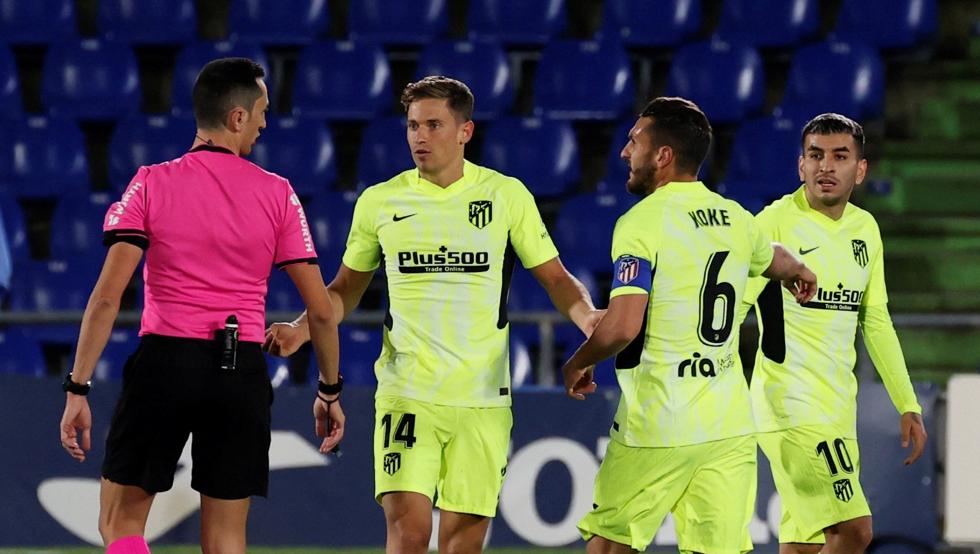 La jugada prosiguió con un centro del balcánico que remató de media chilena el Chucho Hernández. Acto seguido, los jugadores colchoneros le pidieron explicaciones a José María Sánchez Martínez, colegiado del choque, porque era evidente que el jugador del Getafe había intentado simular.
