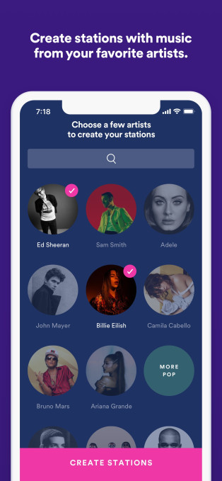 La aplicación Stations de hoy presenta una variedad de listas de reproducción por género, década, actividad y más, pero también se personaliza para el usuario final con el tiempo. También puede optar por crear sus propias estaciones seleccionando entre los artistas favoritos en una experiencia que recuerde a la personalización ofrecida hoy por YouTube Music, hasta las fotos de perfil de artista redondeadas que toca.