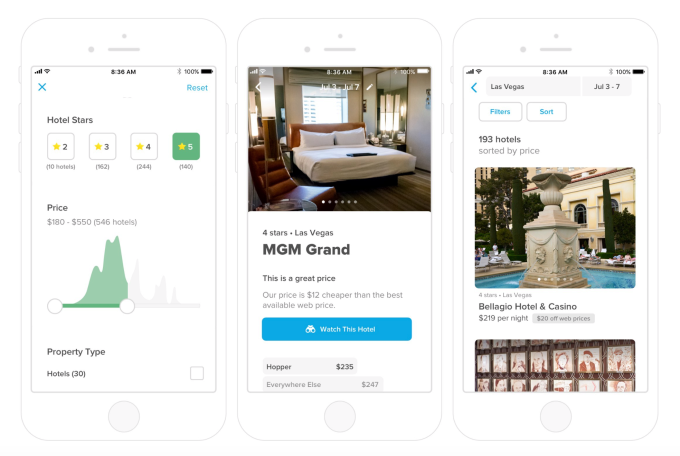 Hopper, la aplicación de viaje práctica que utiliza A.I. Para predecir los precios de las tarifas aéreas, hoy se está ampliando su servicio para incluir hoteles. Al igual que las tarifas aéreas, los precios de los hoteles también son dinámicos: pueden variar con la demanda del viajero. Durante las horas punta, los precios son más altos. Y cuando un hotel tiene habitaciones que llenar, los precios bajan. Ahora, Hopper está llevando su misma tecnología de predicción a más de 270,000 hoteles en más de 200 países y territorios en todo el mundo.