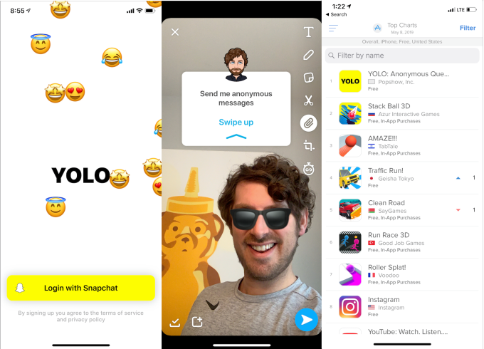 La aplicación de preguntas anónimas de YOLO basada en Snap Kit ahora es la aplicación número 1 de EE. UU.