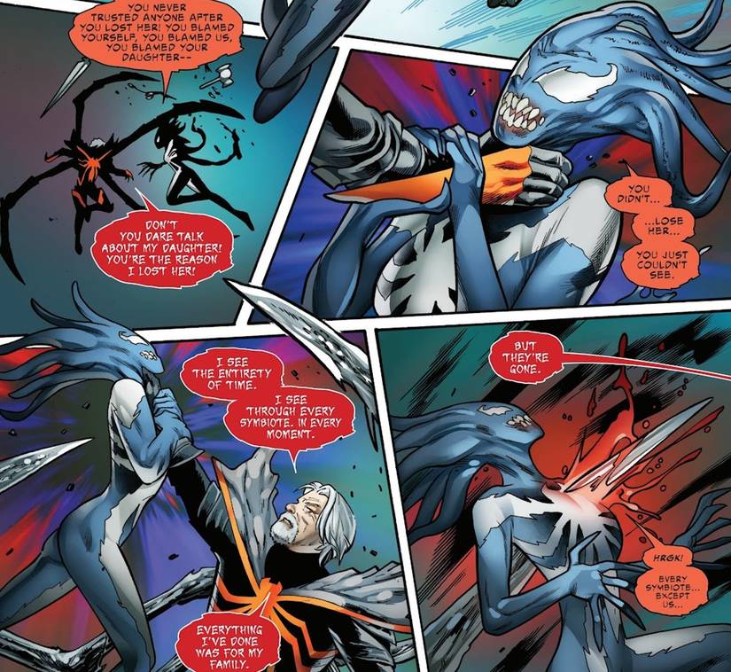 ¡Advertencia! ¡Spoilers por delante de Venom War: Spider-Man #3!Peter Parker hombre araña Nunca ha tenido una vida familiar estable. La muerte de sus padres lo dejó a cargo de su tía y su tío, al menos hasta que su tío también murió, imbuyéndolo de su deber heroico. En la edad adulta, las cosas se volvieron aún más complicadas, con la historia de Peter que abarca el matrimonio, la anulación demoníaca y los niños del universo alternativo. Sin embargo, a medida que Spider-Man toma su forma definitiva, al menos su hija está a su lado… para poder matarlo.