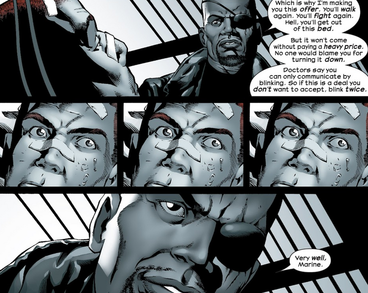 Apareciendo por primera vez en Ultimate Comics: The Ultimates # 22 por Sam Humphries, Joe Bennett, Ruy José, Matt Milla y Clayton Cowles, Dane Whitman es un ex marine reclutado en los Ultimates de la Costa Oeste. En Ultimate Universe, también conocido como Earth-1610, Marvel renovó a sus héroes para los lectores modernos, contando nuevas historias ambiciosas que no eran posibles en la continuidad de la corriente principal. Estas historias continuarían inspirando a gran parte de la MCU, pero mientras Kit Harington presentó recientemente a los fanáticos del cine al Caballero Negro en Eternos, la versión de la serie de cómics es muy diferente.