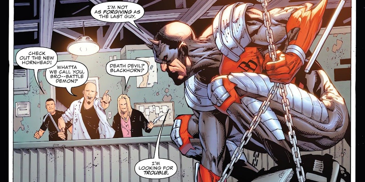 Los disfraces de superhéroe están destinados a proteger la identidad de quienes los usan, y la armadura negra de Daredevil puede ser la mejor que jamás haya logrado lograrlo. A pesar de llevar el mismo nombre y luchar contra su enemigo más cercano, Temerario se vuelve irreconocible por su nuevo traje: un nuevo comienzo que Matt Murdock ha pasado muchos años de su vida deseando poder recuperar.