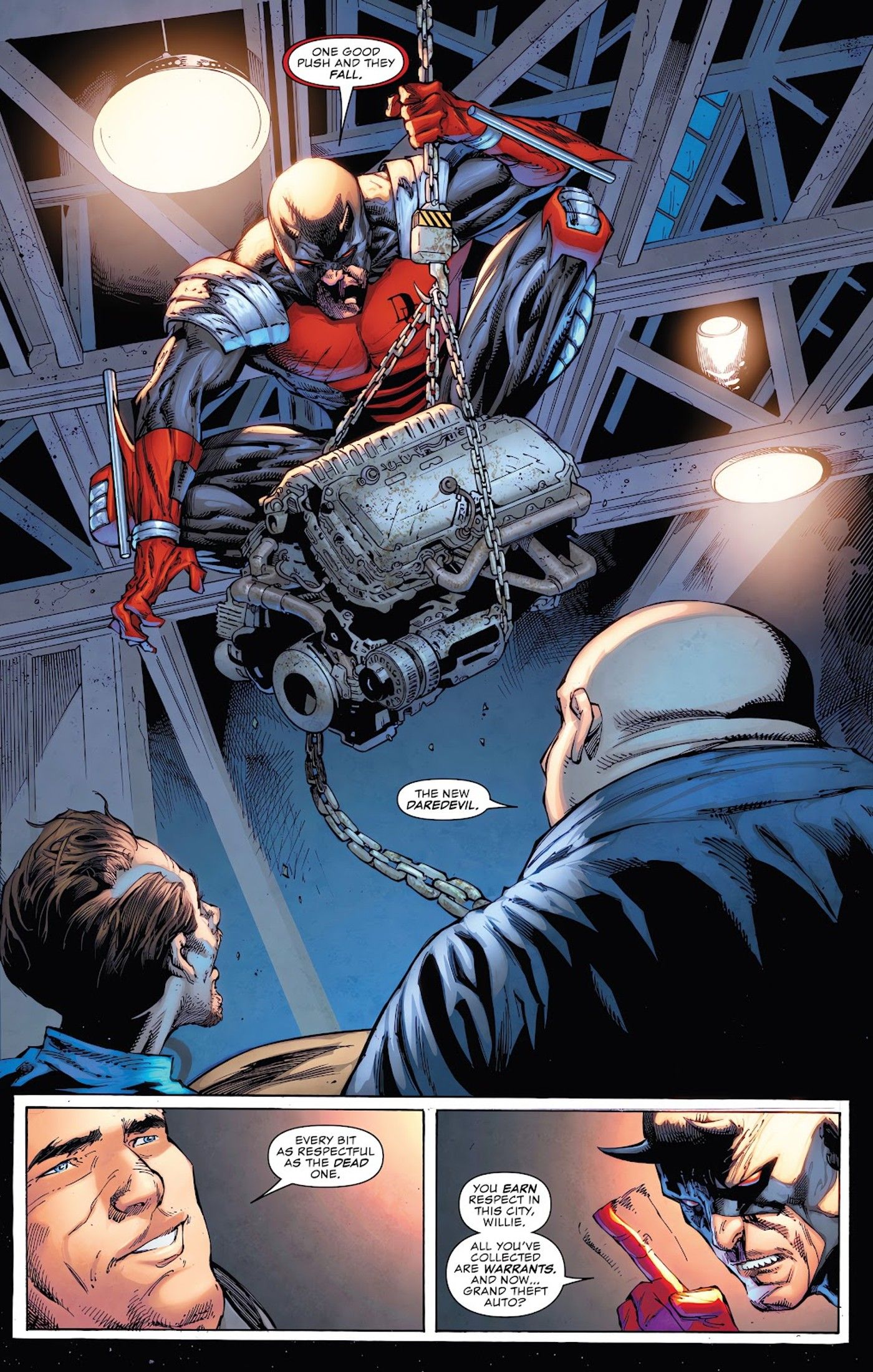 “/> Mientras Wilson Fisk está en un desguace con el dueño, levantan la vista y ven a Daredevil justo encima de sus cabezas. Excepto ni siquiera Kingpin reconoce a Matt como el mismo hombre Ha luchado tantas veces antes… e incluso se ha desenmascarado.