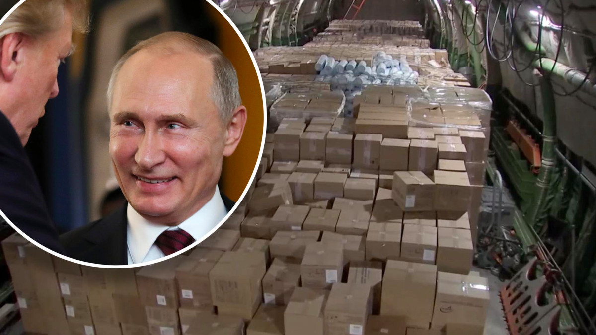 “El avión de la Fuerza Aeroespacial de Rusia con un cargamento de equipamiento médico y mascarillas partió a Estados Unidos”, señala la nota.