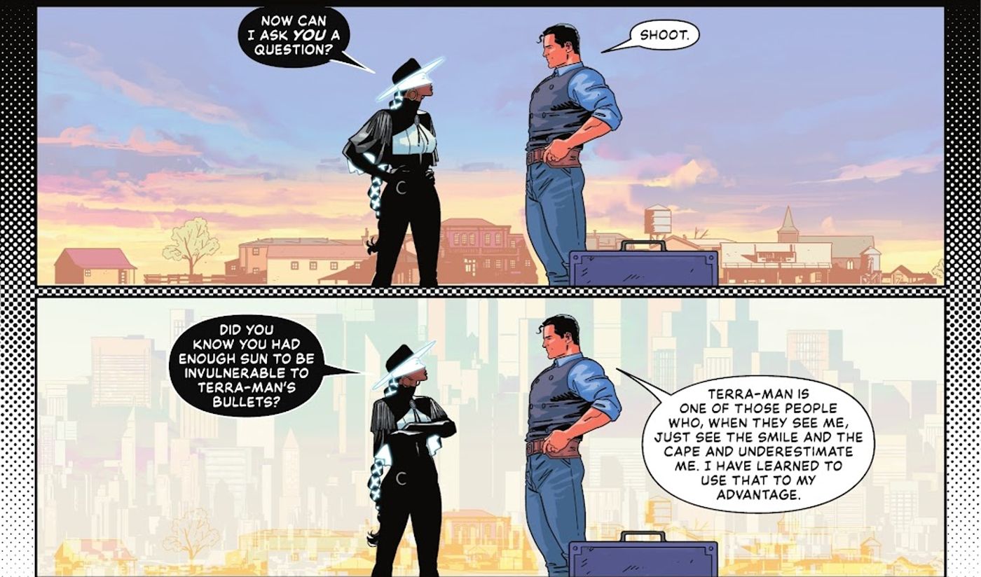 - Superman comprende la importancia de la luz solar para su bienestar y no se sorprendió cuando recuperó sus poderes después de pasar un tiempo en el Salvaje Oeste. Sin embargo, sus profundos vínculos con Metrópolis le impiden abandonar la ciudad.