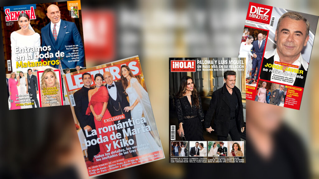 Lecturas adelantó su edición al pasado lunes para dar todos los detalles de la boda de Kiko Matamoros y Marta López Álamo. La revista ofreció un amplio reportaje con los mejores looks del enlace, los invitados, las anécdotas y todas las curiosidades de una de las bodas más esperadas del año. También dedicó parte de sus páginas a otras bodas, como la del príncipe Hussein de Jordania o la del hijo de Rosa Clará en París