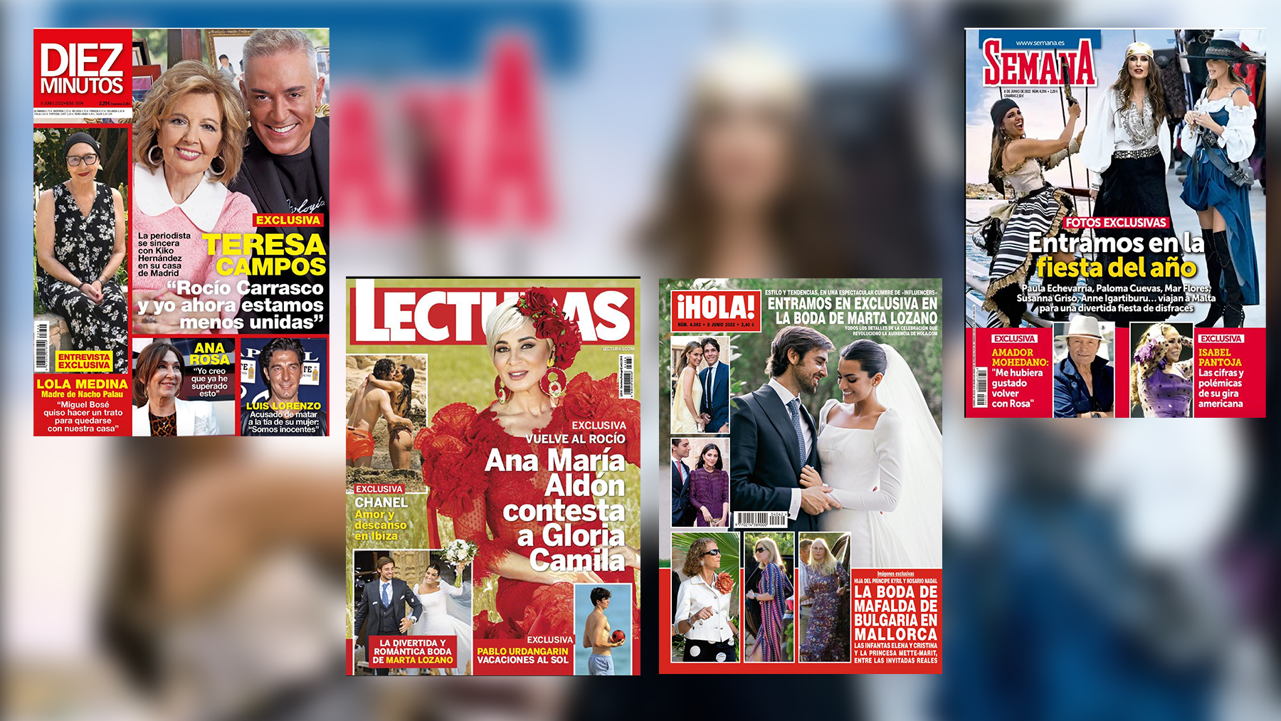 Como colofón, la revista ¡Hola! hace de su portada un escaparate de bodas. La revista ofrece un despliegue del enlace de Marta Lozano y Lorenzo Remohi, con imágenes de la boda que no se han visto hasta ahora y que muestran detalles desconocidos sobre la gran fiesta de la pareja, rodeada de influencers y figuras destacadas de la sociedad. ¡Hola! también publica fotografías exclusivas de la boda de Mafalda de Bulgaria este fin de semana en Mallorca. Un cónclave de royals al que no faltaron las Infantas Elena y Cristina, así como otros rostros conocidos del panorama royal, como es el caso de la princesa Mette Marit de Noruega.