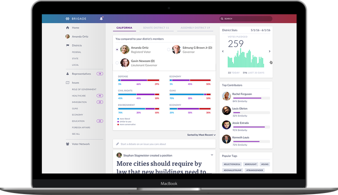 Después de que Brigade se lanzó como una aplicación para debatir posiciones sobre temas políticos acalorados, pero no logró ganar fuerza, se centró en lo que Causas había tratado de ser: un lugar para mostrar apoyo a los movimientos sociales. Más recientemente, se enfoca en un rastreador de representantes para seguir las posturas y los votos de los funcionarios electos. Sin embargo, la campaña de 2016 y los exámenes parciales de 2018 parecen sobrevolar la cabeza de la Brigada. Nunca logró convertirse en un centro de activismo, impactar significativamente la participación de los votantes, o incluso ser parte de la conversación.