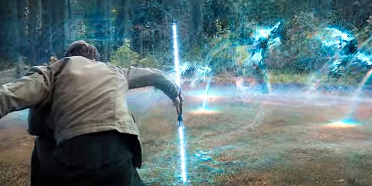 El Proyecto Adán sigue al personaje Adam Reed (Ryan Reynolds) y sus esfuerzos por desentrañar el misterio detrás de su esposa desaparecida viajando en el tiempo. Mientras que en 2022, se encuentra cara a cara con su yo de 12 años. El joven Adam (Walker Scobell) está fascinado por la tecnología avanzada creada en el futuro, especialmente el bastón similar a un sable de luz que su yo mayor usa para impulsarse por el aire, crear ondas de choque que hacen retroceder a sus oponentes y desintegrar a los enemigos que entran en contacto directo. contacto con sus extremos incandescentes. El joven Adam encuentra la empuñadura y está convencido de que es un sable de luz, lo que Future Adam niega repetidamente. Pero cuando Future Adam finalmente lo saca y se revela que se parece mucho a un arma Jedi, el joven Adam se muestra inexpresivo: “Eso es un sable de luz, amigo..” La línea se hace aún mejor cuando los espectadores consideran uno de los otros proyectos cinematográficos de Reynolds.