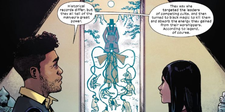 Emily Kim y Takeshi Miyazawa Seda La serie es un spin-off suelto de Spider-Man, y su primer arco ve a Cindy Moon confrontar a una bruja peligrosa, conocida como muchos, del período Joseon de Corea. los muchos históricamente apuntó a los líderes de los cultos en competencia, absorbiendo la preciosa energía vital que obtuvo de sus adoradores cuando los mató, y en un momento planeó apoderarse de Corea. Fue derrotada cuando sus enemigos unieron fuerzas contra ella y sellaron su cuerpo dentro de una tumba. Se despertó en una exhibición de museo en el siglo XXI y comenzó a aprovecharse de las personas influyentes en las redes sociales, cuya energía vital puede fortalecerla de la misma manera que los sacerdotes que mató hace tantos siglos. La idea suena notablemente similar a Buffy la caza vampirosEl episodio de la temporada 2 de Inca, “Inca Mummy Girl”, aunque actualizado para adaptarse a la era de las redes sociales de una manera que encaja perfectamente.