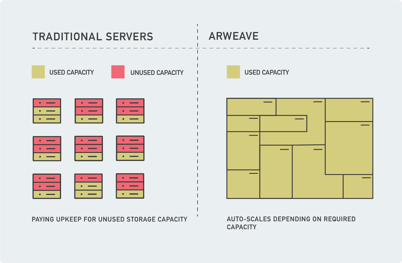 La startup ha construido un nuevo tipo de blockchain que se basa en la disminución de los costos de almacenamiento de datos al estilo Law de Moore. Los usuarios pagan por unos pocos cientos de años por adelantado (alrededor de medio centavo por megabyte), y el interés acumulado por el pago en exceso cubrirá perpetuamente los costos de la reducción de los precios de almacenamiento.