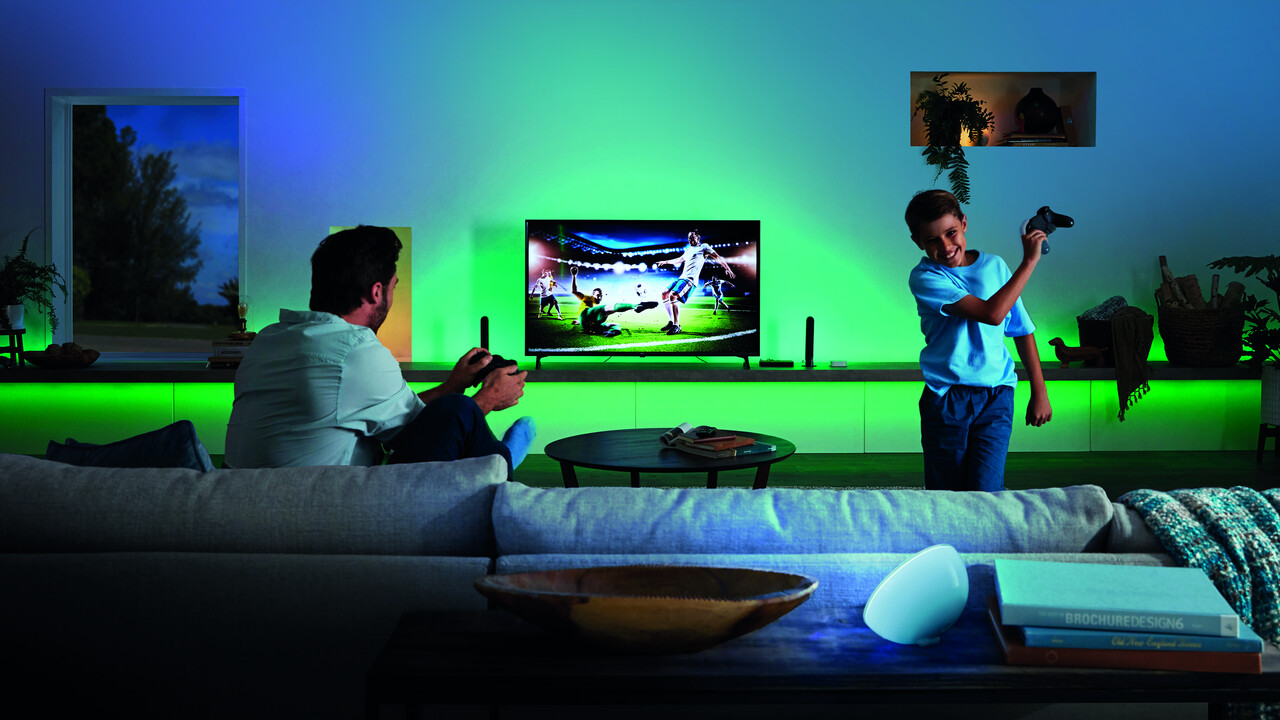 Descubrí que la iluminación era extremadamente buena para imitar los colores y el brillo de una escena, especialmente si te tomas el tiempo para configurar con precisión la posición de tus luces Hue para un “área de entretenimiento” dedicada en la aplicación principal oficial de Hue. Es un efecto que, cuando se usa en sus configuraciones más sutiles, básicamente puede desvanecerse pero aún proporcionar una mejora genuina para la experiencia de visualización, haciéndola sentir más inmersiva. En su configuración máxima, es mucho más notable, pero sigue siendo algo que básicamente se desvanece en el fondo durante un período prolongado de uso, en el buen sentido.