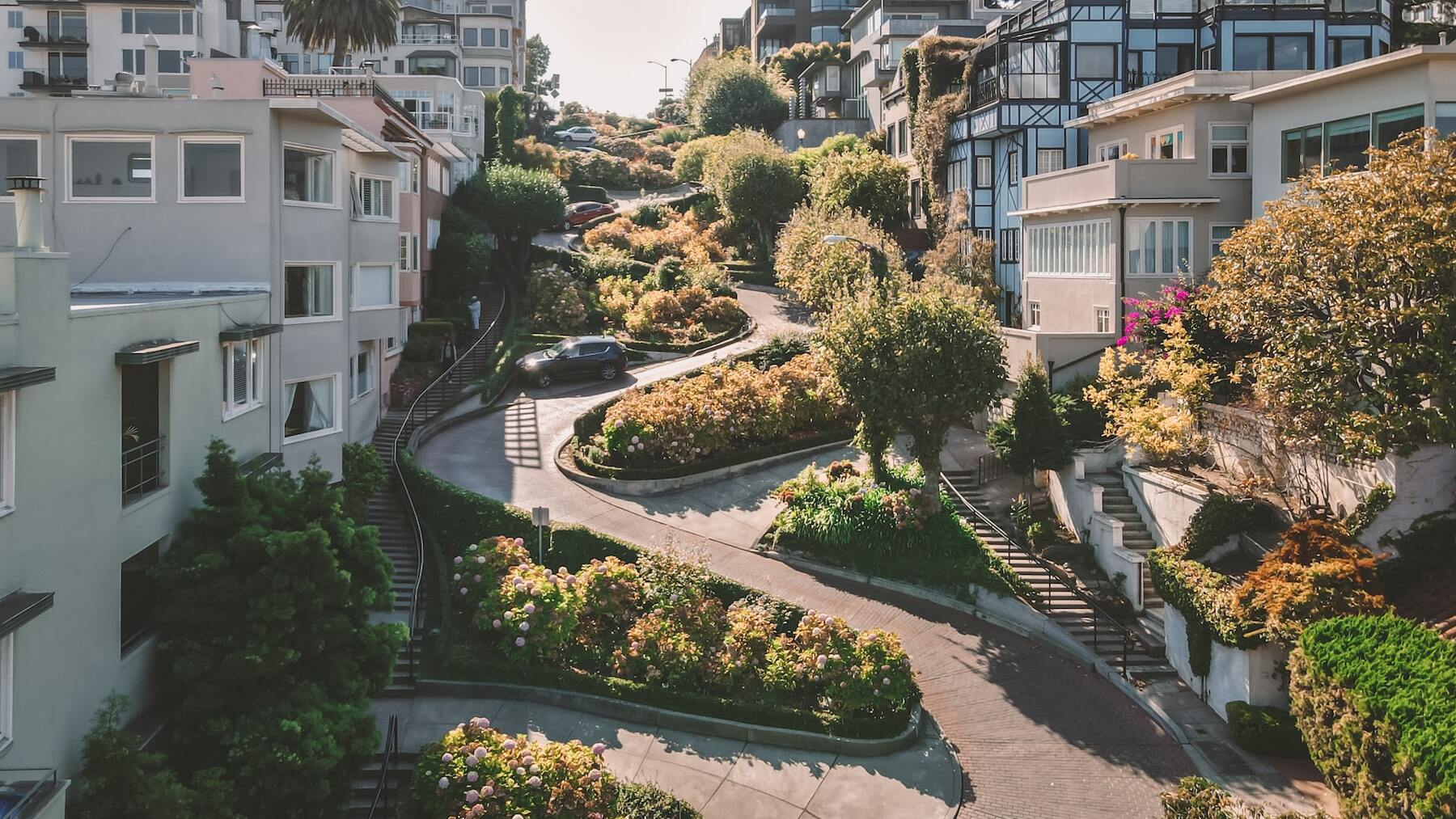 Lombard Street es la calle más sinuosa del mundo. Con el objetivo de reducir la pendiente natural de la colina, fue creada con ocho curvas cerradas. La velocidad máxima permitida es de apenas 8 kilómetros por hora.