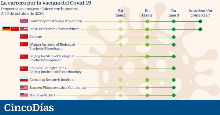 Gobiernos, empresas, sistemas sanitarios y ciudadanos escrutan con enorme interés el conocer cuándo llegará una vacuna frente al Covid-19 que pueda dar un respiro a la economía, a la sanidad y cierta normalidad parecida a las vidas de antes de la pandemia. Los responsables políticos, organismos de investigación y la industria farmacéutica lo saben y en una carrera sin precedentes avanzan con rapidez hacia una solución. De momento, son 45 las candidatas desarrolladas por centros de I+D, universidades y laboratorios farmacéuticos que ya se prueban en ensayos clínicos con humanos, según recoge el último listado público de la Organización Mundial de la Salud.