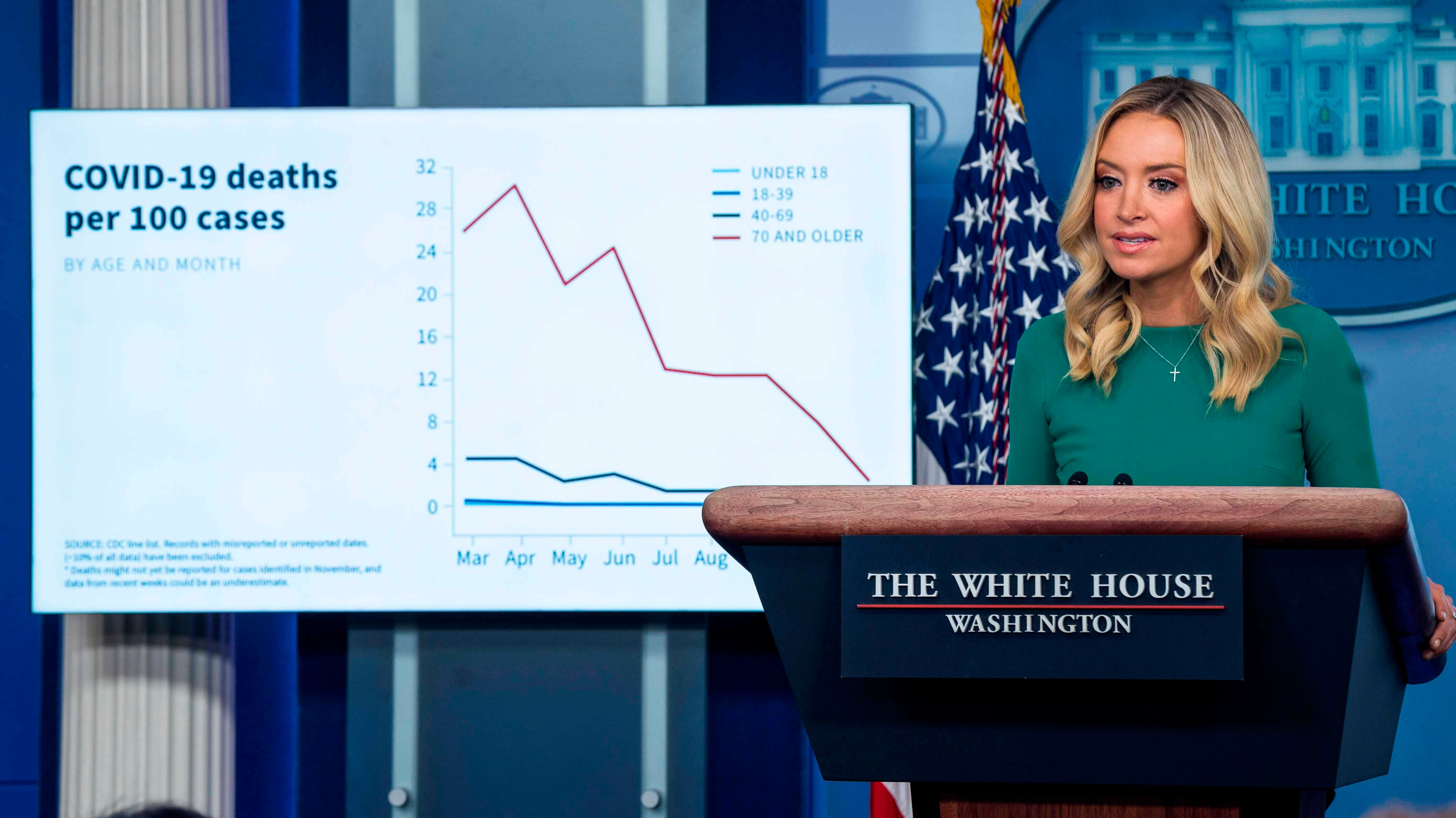 Durante la rueda de prensa, McEnany insistió en atribuir el progreso en las vacunas a la gestión de Trump, pese a que al comienzo de la pandemia minusvaloró intencionadamente la importancia de la enfermedad, lo que él mismo ha reconocido, para que no cundiera el pánico entre la población, y se negó a usar mascarilla en público durante varios meses.