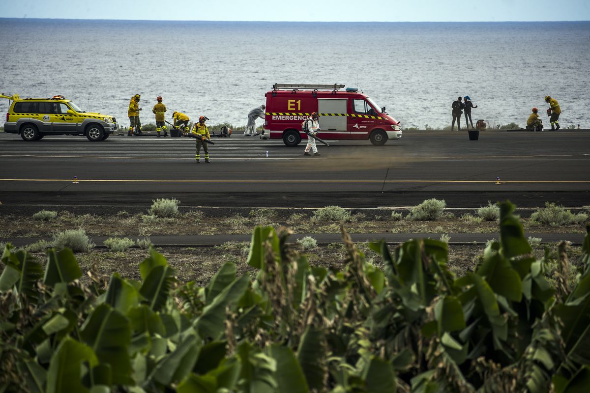 Sin fecha de vuelta a las operaciones en el aeropuerto de La Palma, cerrado al tráfico aéreo desde la tarde del viernes excepto para helicópteros de emergencia y del Estado. La causa, la acumulación de ceniza volcánica que se ha depositado en la pista y en la plataforma. En total, unos 250.000 metros cuadrados de superficie.