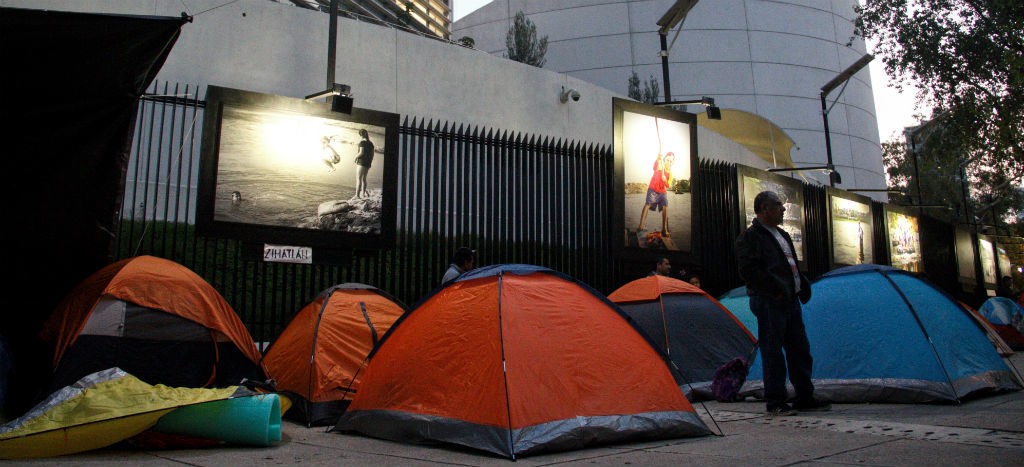 El Centro de Información Vial de la Secretaría de Seguridad Ciudadana de la Ciudad de México alertó sobre la presencia de los inconformes en Paseo de la Reforma, a la altura de la calle París al poniente, donde comenzaron a colocar casas de campaña.