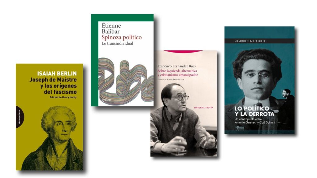 Spinoza político, de Balibar, es precisamente un canto al reconocimiento del otro. Laleff Ilieff, hace algo diferente: contrapone el pensamiento de Schmitt al de su contemporáneo pero opuesto Antonio Gramsci, buscando las raíces comunes que les dan sentido. Isaiah Berlin, un liberal, ofrece en Joseph de Maistre y los orígenes del fascismo un resumen descriptivo del pensamiento de De Maistre. No hay complacencia con sus ideas; tampoco saña. Se trata de comprender el sentido de su obra e incardinarla en el momento histórico en que se dio, así como, en este caso, señalar la influencia posterior, sobre todo en el fascismo europeo.